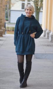 Außerdem kannst du deinen Basic-Hoodie oder deinen Hoodie mit Tunnelzug verlängern zum stylischen Hoodiekleid.